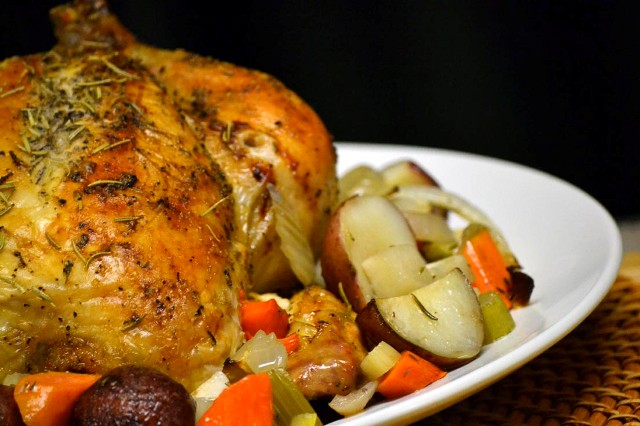 Roasted Chicken Over Root Vegetables